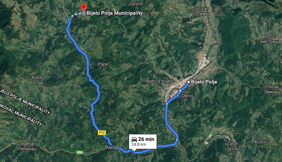 It is 51 km from the center of Kolasin, 26 km from the center of Bijelo Polje, and 122 km from the capital Podgorica.